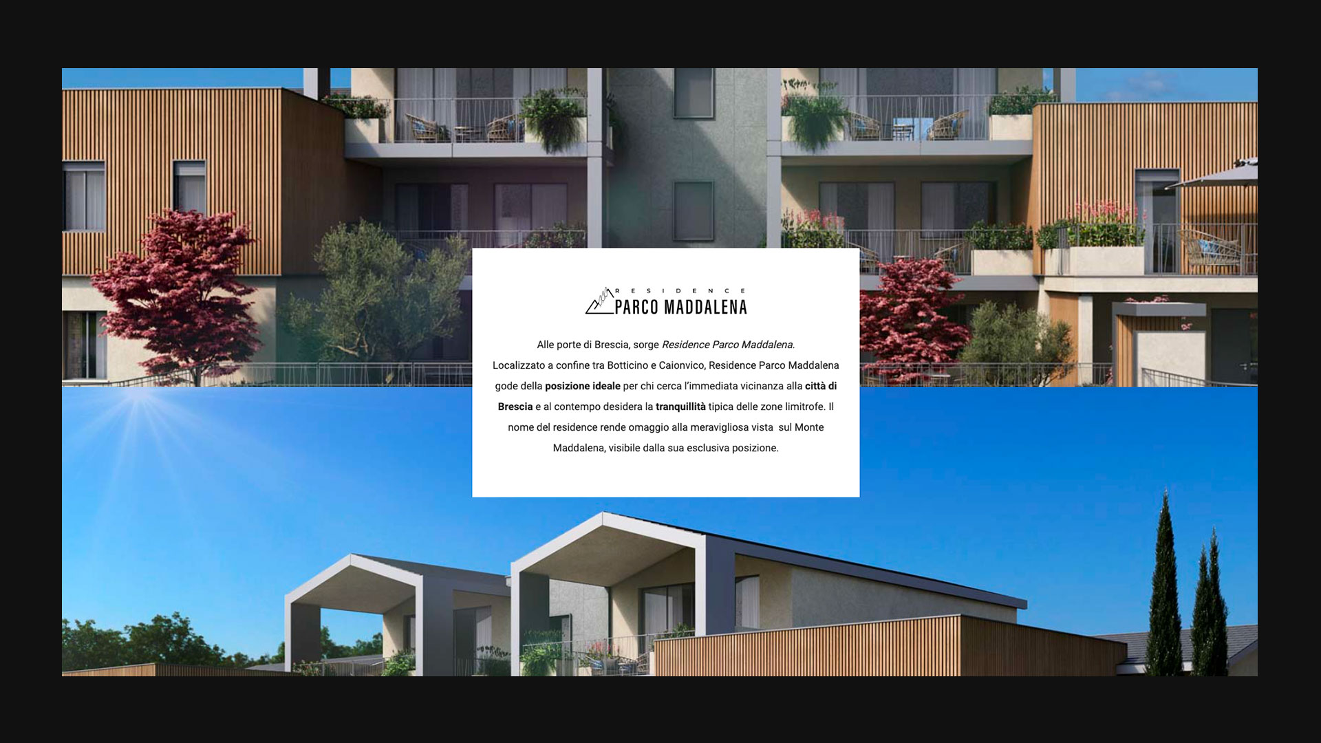 Localizzato a confine tra Botticino e Caionvico, Residence Parco Maddalena gode della posizione ideale per chi cerca l’immediata vicinanza alla città di Brescia e al contempo desidera la tranquillità tipica delle zone limitrofe. Il Residence Parco Maddalena è stato ideato da Brescia Iniziative Immobiliari S.r.l., una società composta da BH S.r.l. e Filva S.r.l. La progettazione, realizzata da Studio Grechi, ha integrato architettura, tecnologia e sostenibilità ambientale. MDAC ha realizzato il sito web di Residence Parco Maddalena per presentare il progetto e tutte le unità abitative disponibili per la vendita.