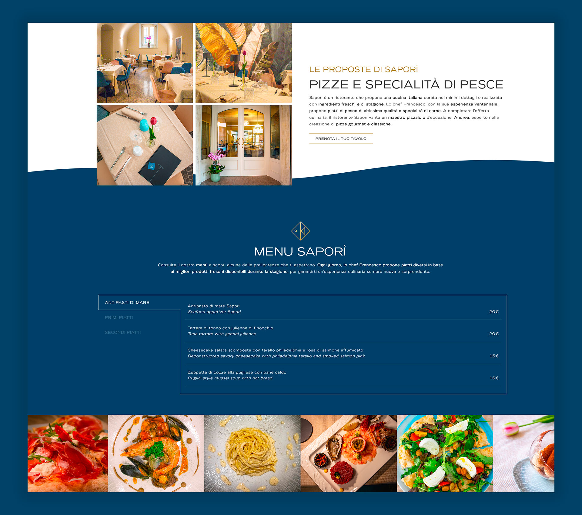MDAC si è occupata di tutta la brand identity: dal logo all’insegna, sia all’interno che all’esterno del locale, ogni dettaglio è curato con passione. MDAC si è anche occupata della realizzazione del menu, del biglietto da visita e della creazione di un sito web one-page per condividere la passione di Francesco per la cucina e far conoscere questo nuovo ristorante. Infine, MDAC ha gestito anche i canali social, facebook e instagram.