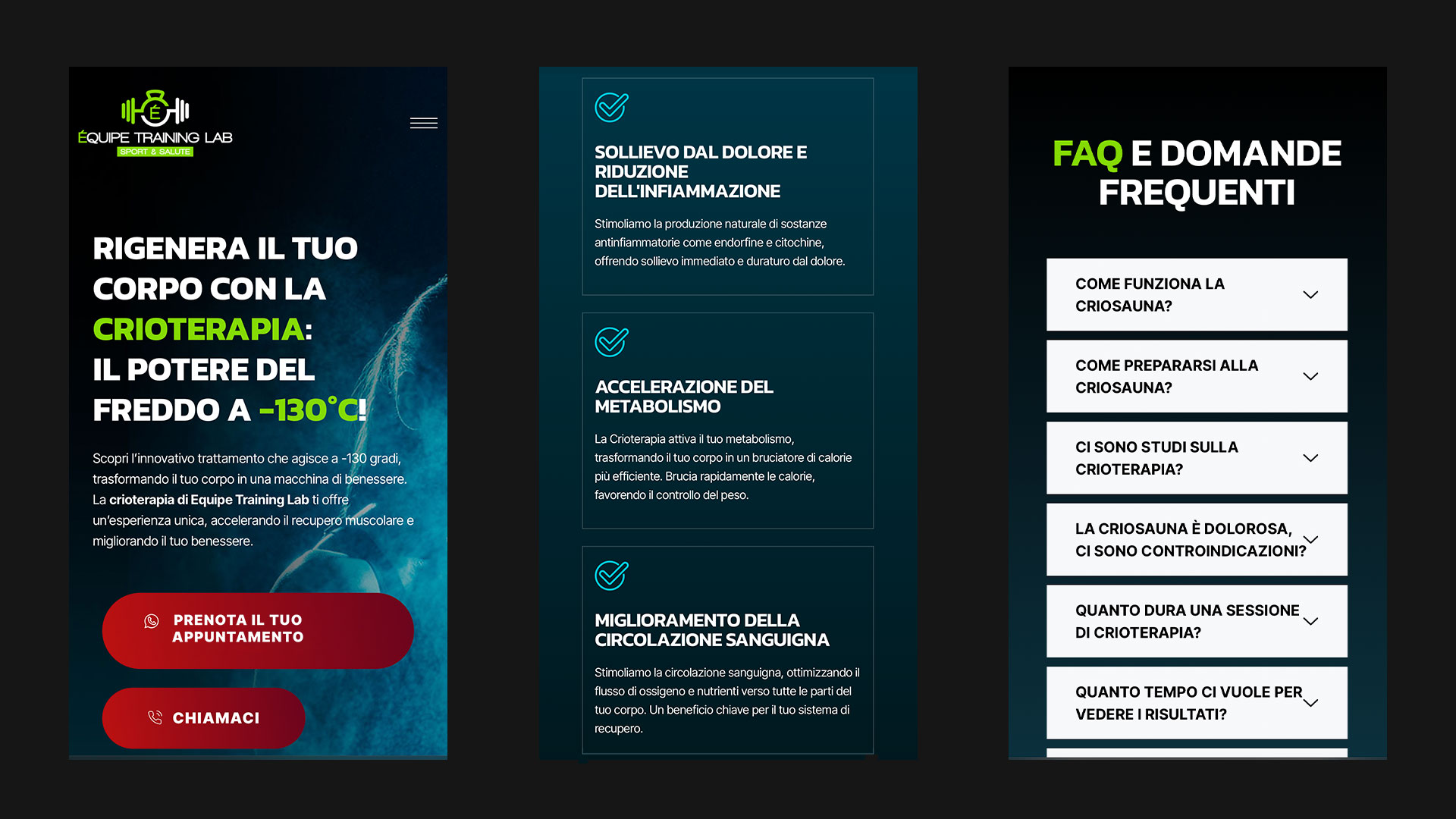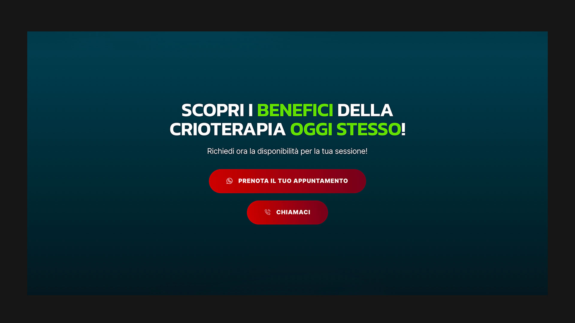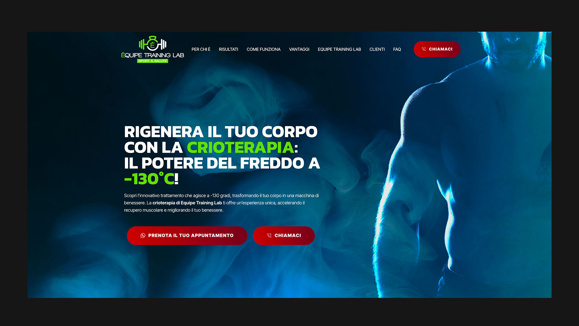 MDAC ha realizzato una landing page dedicata alla crioterapia, progettata per mettere in risalto i benefici del trattamento, presentare testimonianze di successo e fornire informazioni dettagliate sul suo funzionamento. Per promuovere la landing page, MDAC ha inoltre sviluppato e gestito campagne pubblicitarie su social media e Google, con l’obiettivo di attrarre nuovi clienti e rafforzare la presenza online del centro.